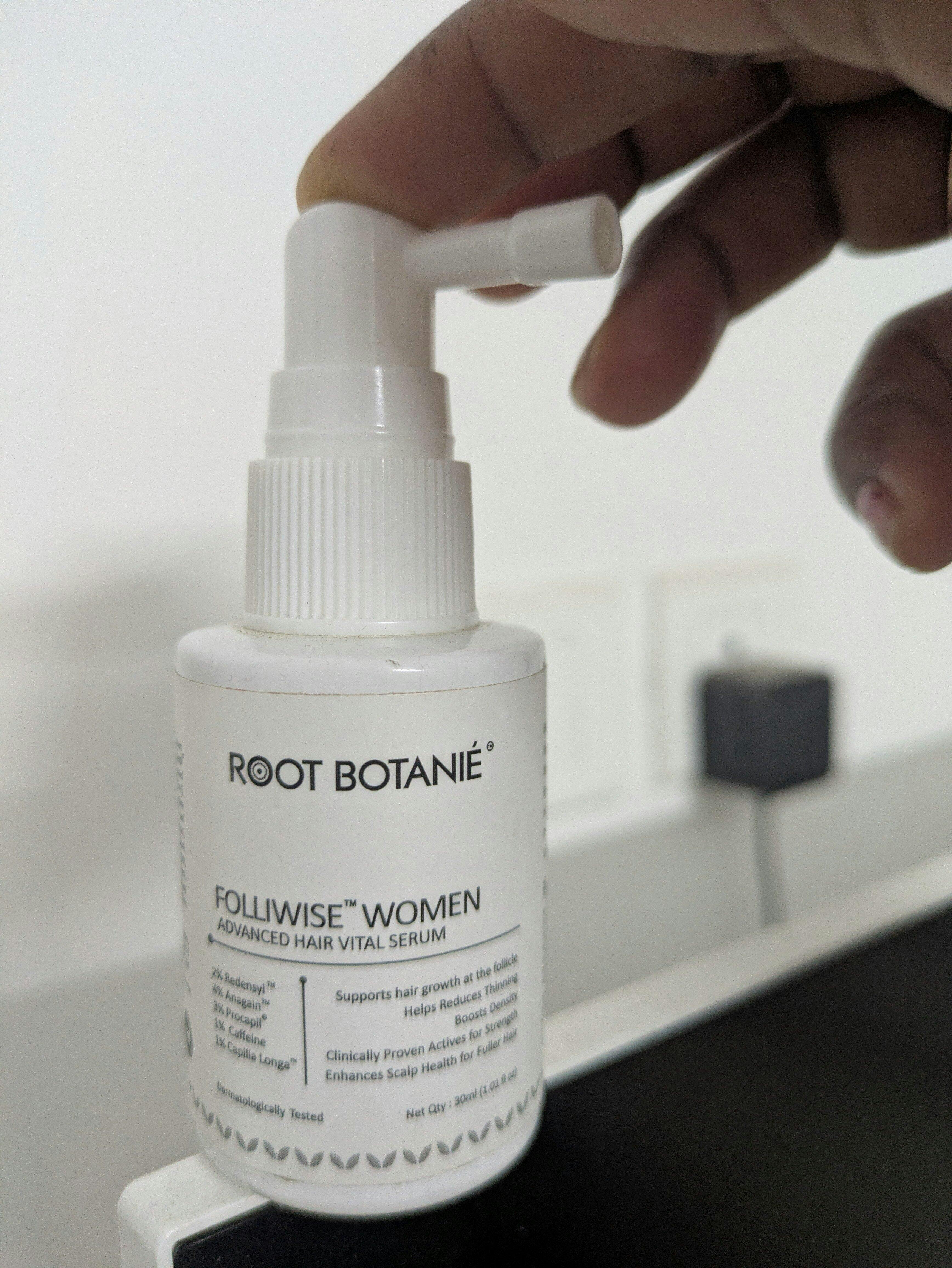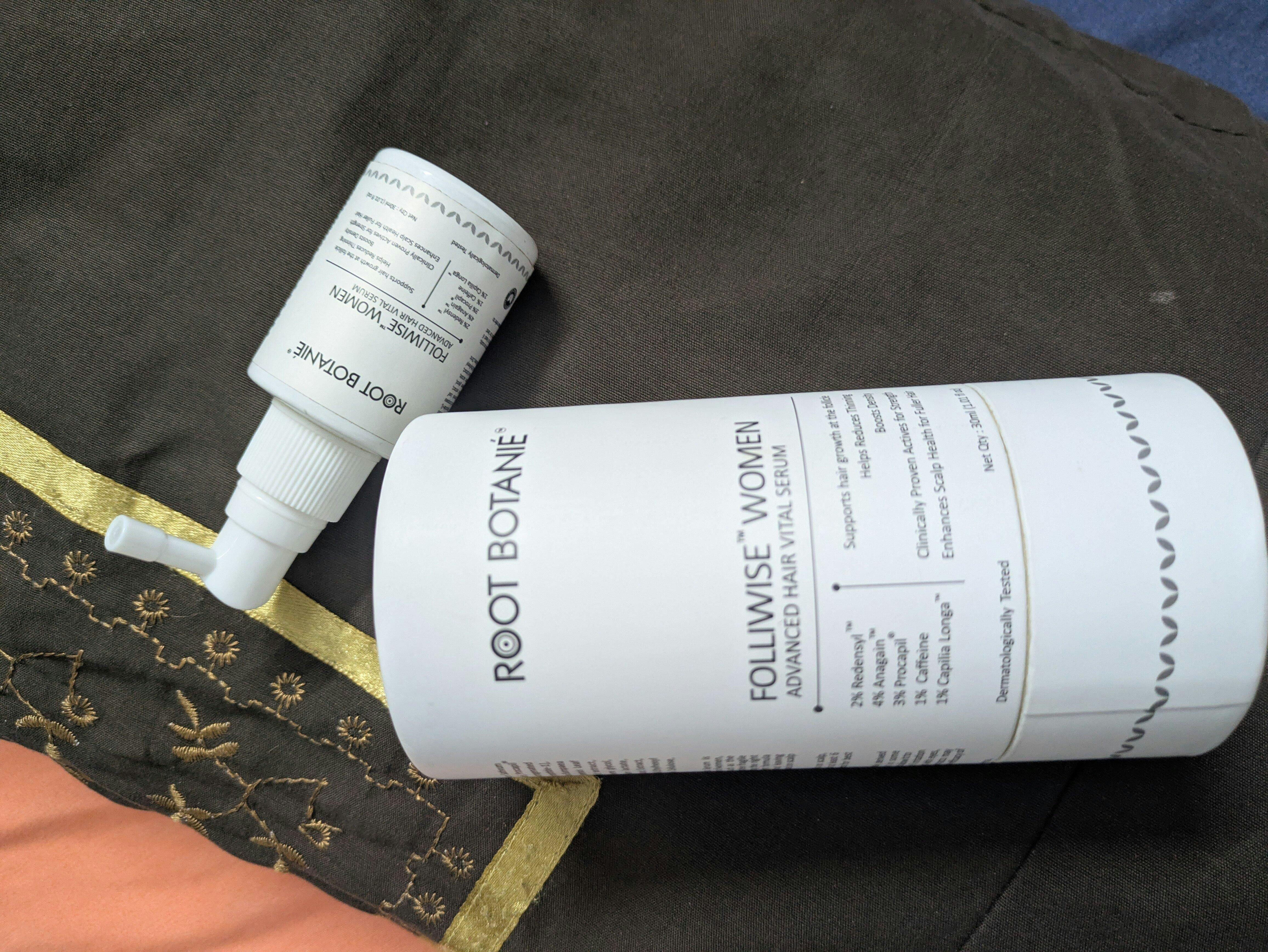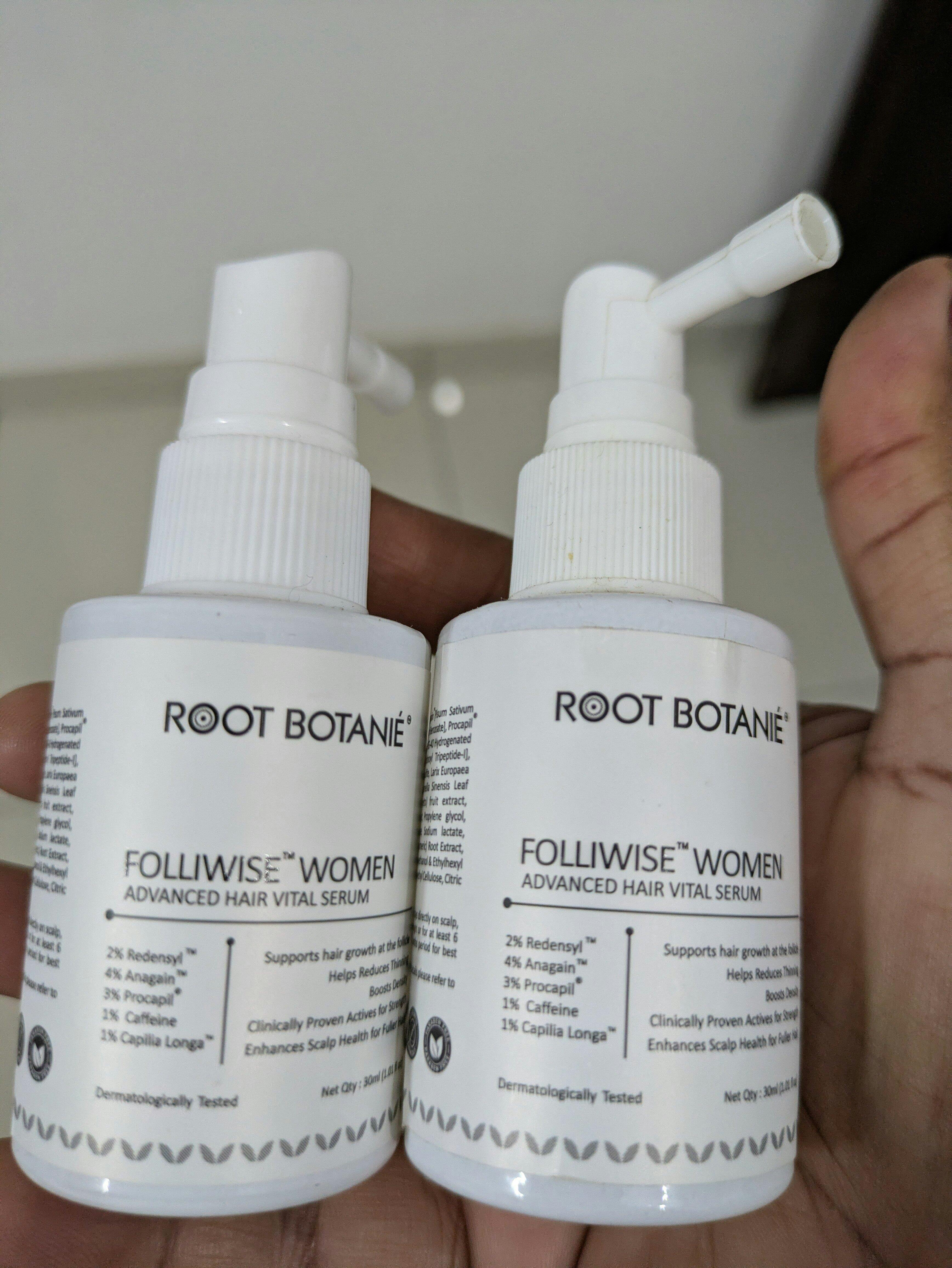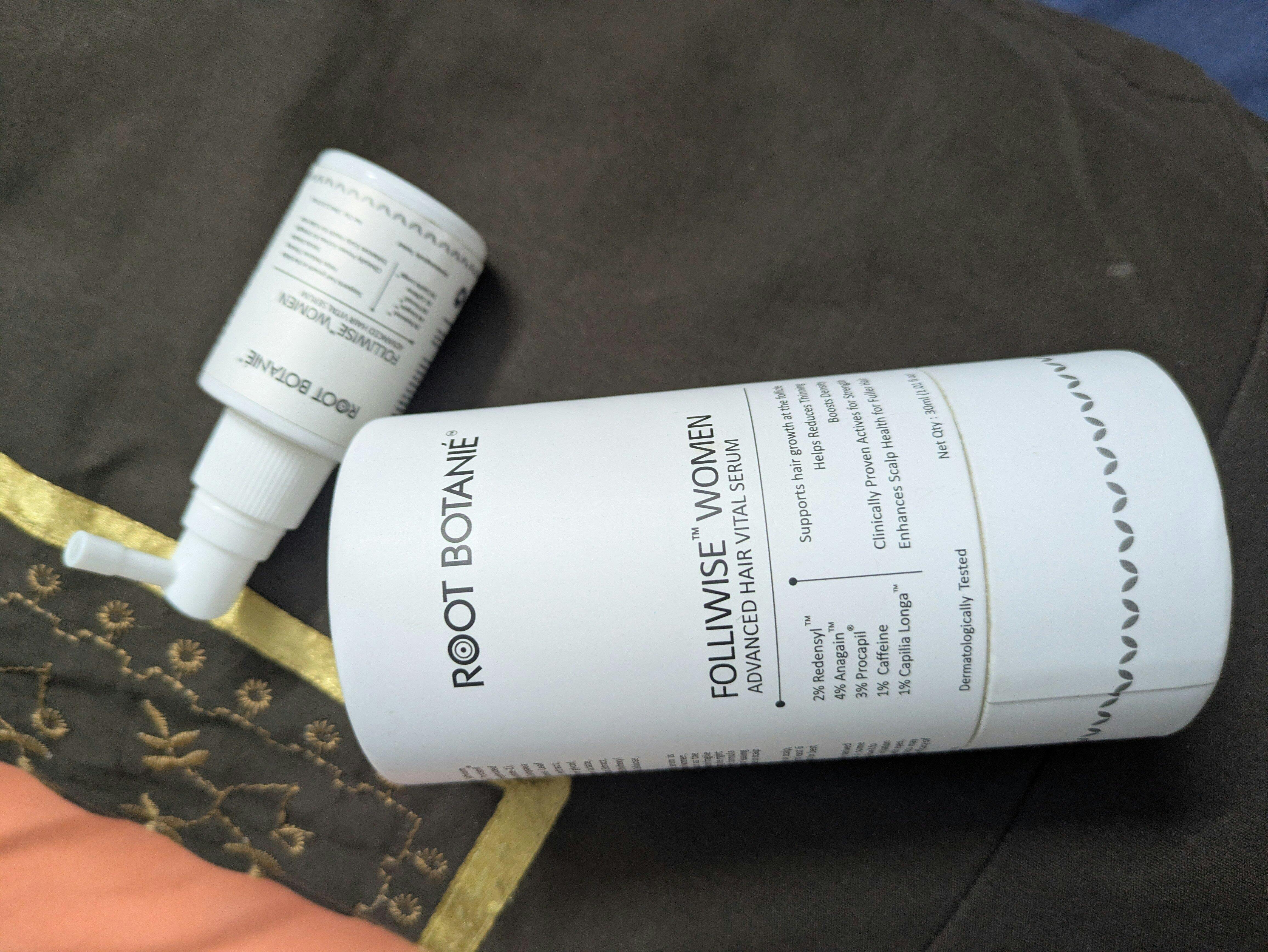 FOLLIWISE is formulated with **plant-derived, clinically tested ingredients** and is generally well-tolerated. Some users may experience mild scalp tingling from the caffeine, which is normal. The formula is **free from sulfates, parabens, and harsh chemicals**. If you have sensitive skin, do a patch test before first use.